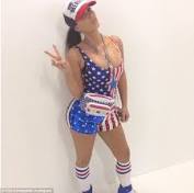 Kim Kardashian in a plunging swimsuit and tiny sequined hotpants with knee high socks The 34-year-old took to Instagram on Independence Day, rocking the star spangled banner to the max in a sexy outfit showing off her love of America ...