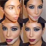 Kim Kardashian shares dramatic collage of her contour make-up routine Kim's flawless complexion was the base of her dramatic look which included a bold wine-coloured pout, dark blue smoky eyes, and lengthy lashes.