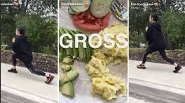 Living the healthy life! Kim Kardashian shows off her morning Living the healthy life! Kim Kardashian shows off her morning workout and breakfast. Kim took to Snapchat to share how she keep her body in shape.