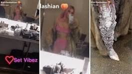 Pink passion! Kim Kardashian shows off her VERY pink look including wig and nails on set. Kim covered up her velvet pink bikini look with a fuzzy fur ...